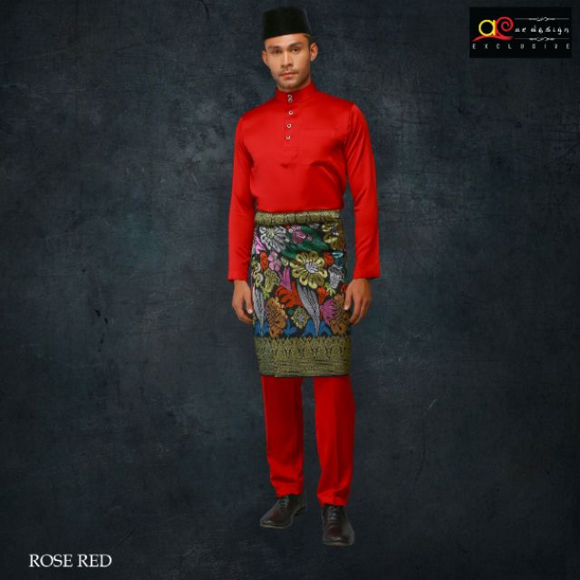 Ar Design Baju Melayu Rose Red Slim Fit Uomo Stretch Shopee Malaysia